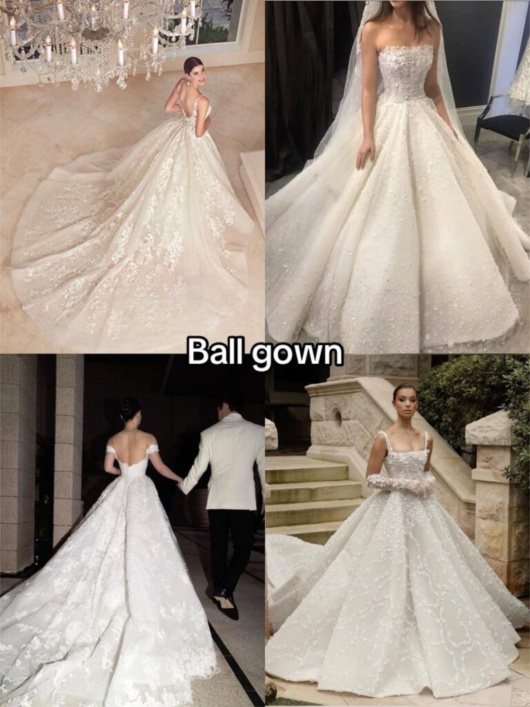 If you’ve always dreamed of that magical princess wedding dress moment—ball gowns are your answer. With a fitted bodice and a full, voluminous skirt, this style instantly gives you that royal bride energy. Perfect for dramatic entrances, cinematic photos, and basically living out your fairytale.