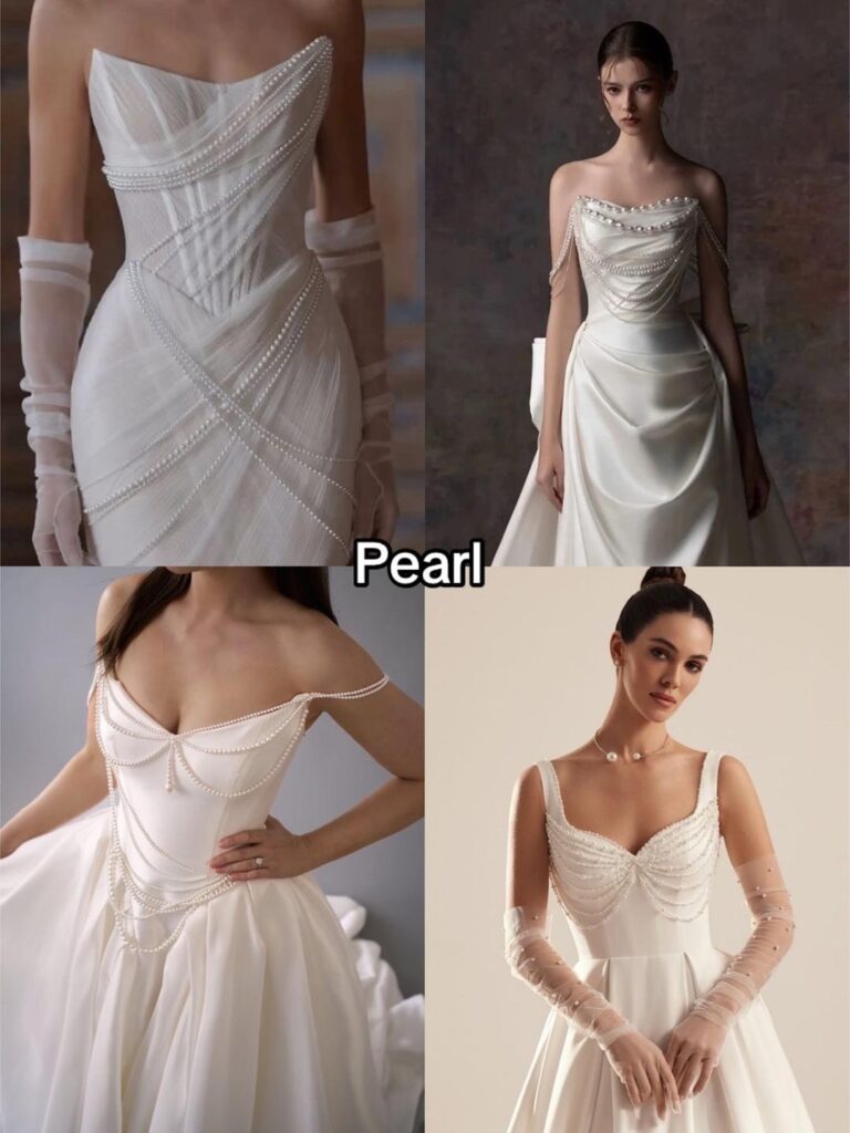 Perfect for brides who adore classic elegance but want a little twist. Plus, pearl accents photograph like a dream—catching light in the softest, most romantic way. Pair your gown with satin gloves, a minimalist updo, and you’ve got that effortlessly chic bridal vibe nailed.