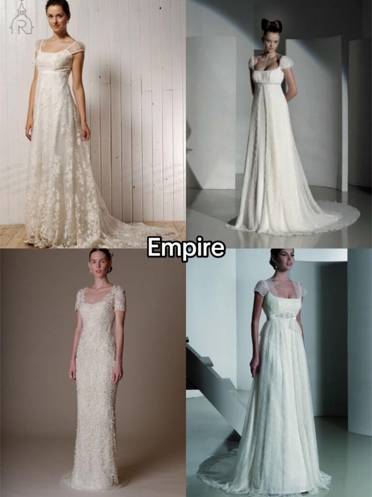 Empire waist wedding dresses are pure romance. With the waistline sitting just below the bust, they flatter almost every body type while keeping things super comfy. The gown then flows softly over the body, giving that dreamy, goddess-like Grecian vibe.