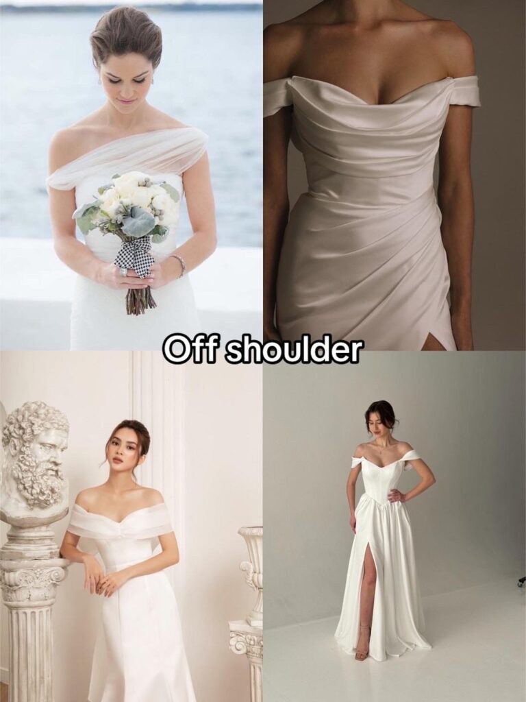 Perfect for both classic brides who want tradition and modern brides chasing a runway-inspired vibe—off-shoulder gowns truly work for any bridal aesthetic. Add a delicate necklace or a soft updo, and you’ve got a bridal look that never fails.